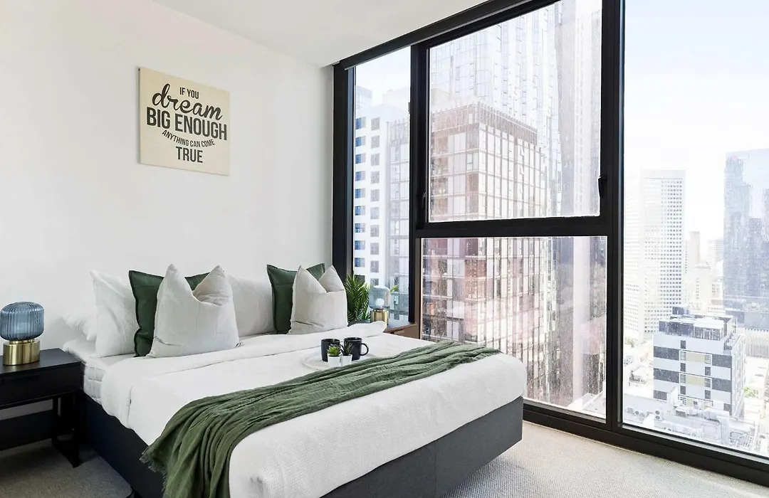 Stylish 2BR Apartment with Panoramic City Viewsアパ-トメントには,器具でいっぱいの台所,テレビ と冷暖房付きの客室があります. アパ-トは,メルボルン博物館から1.6kmに位置しています.